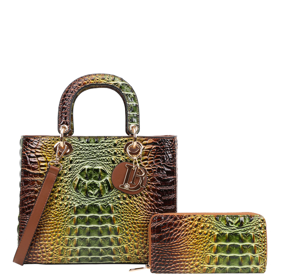 2-IN-1Tie-Dye Croc Satchel Wallet Set