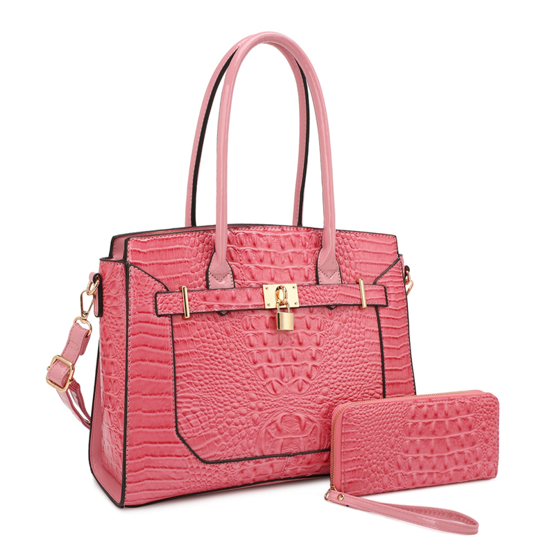 2-in-1 Long Handle Crocodile Skin Satchel Wallet Set