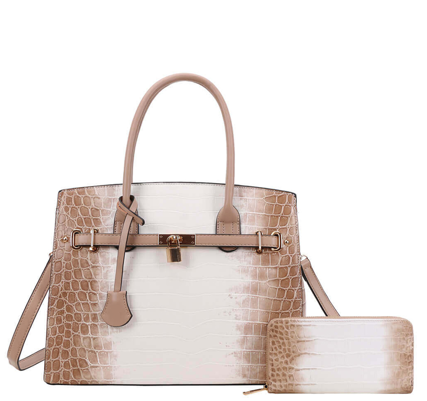 - 2-in-1 Tie-dyed Hot Crocodile Satchel Set + Wallet