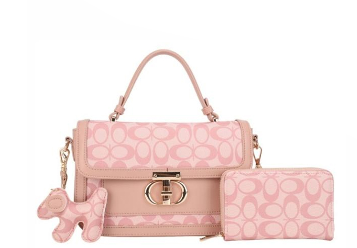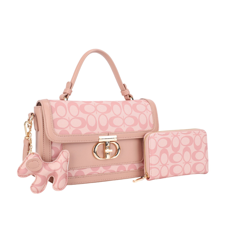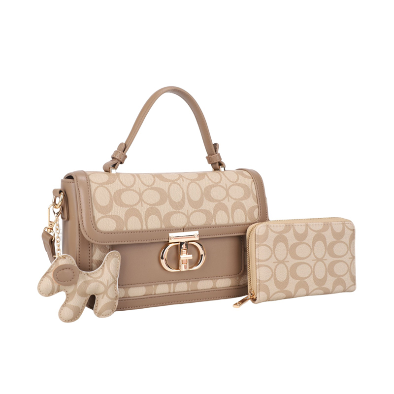2- in-1 Oval Twist Lock Monogram Satchel Set + KeyChain Charming & Wallet