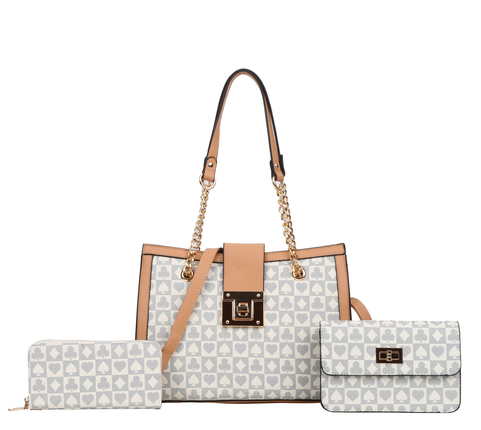 - 3 IN 1 Classic Monogram Shoulder Bag Crossbody & Wallet Set