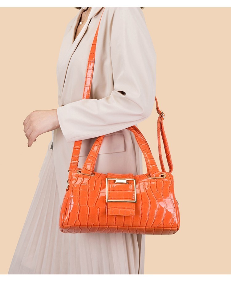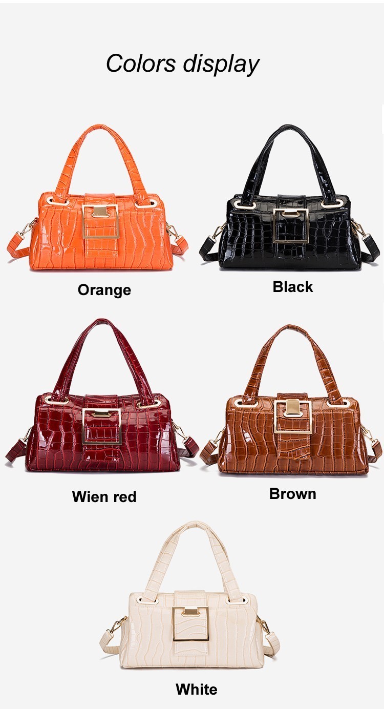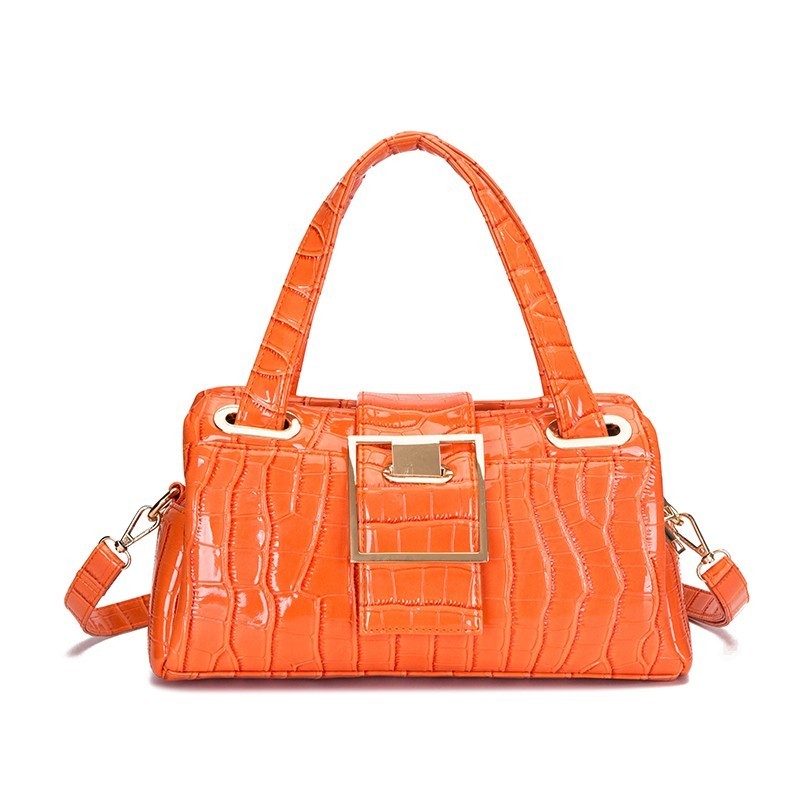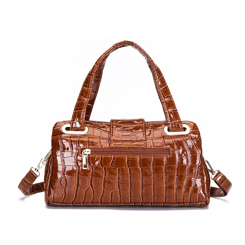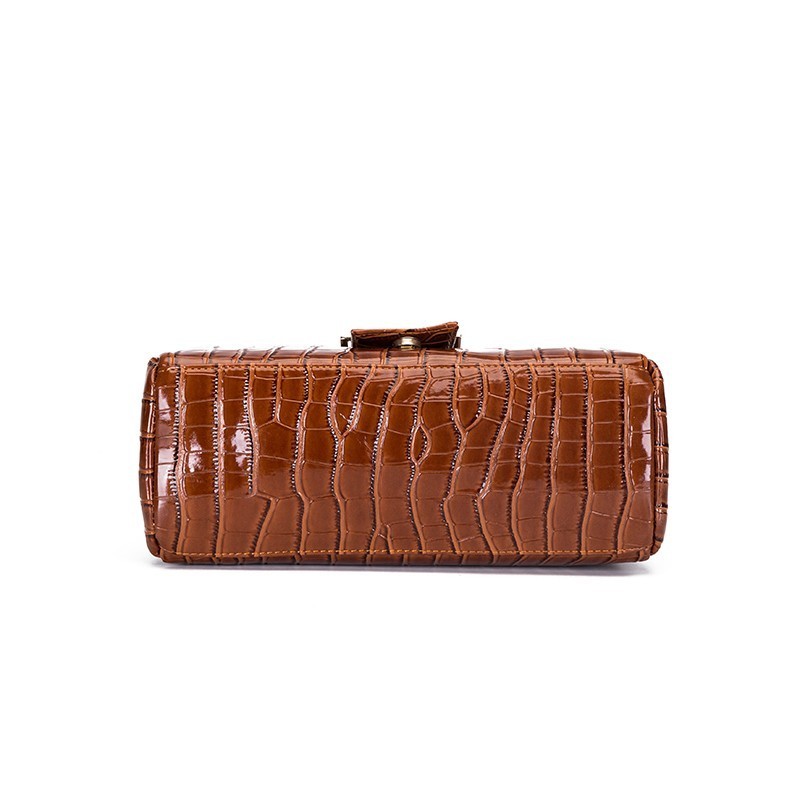 CROCODILE PRINT SMOOTH LEATHER TURN LOCK SATCHEL