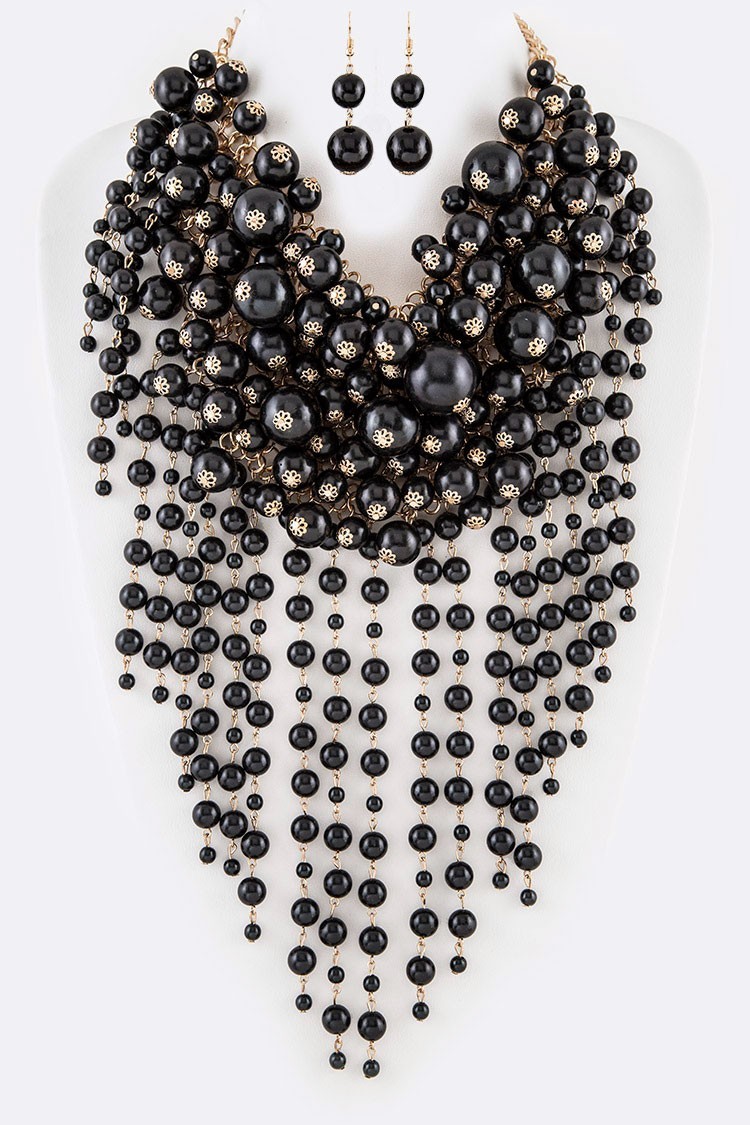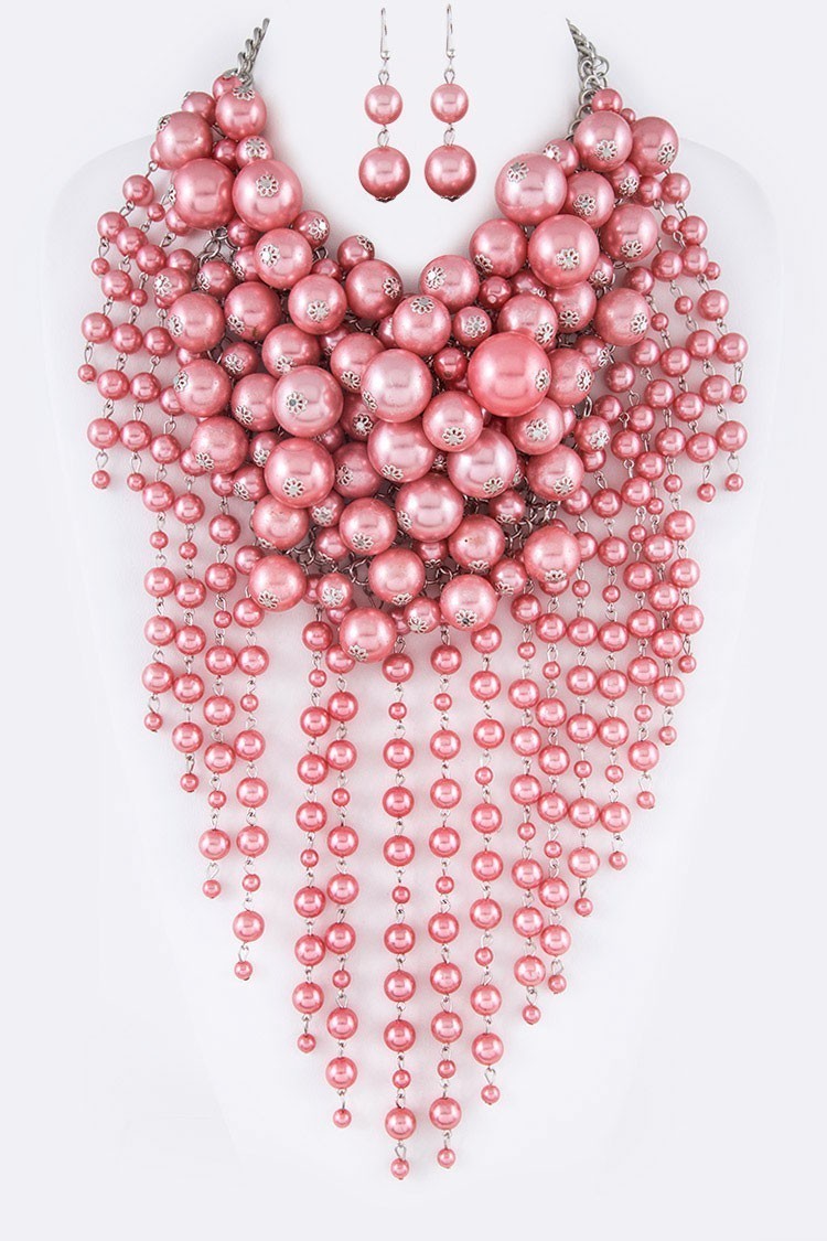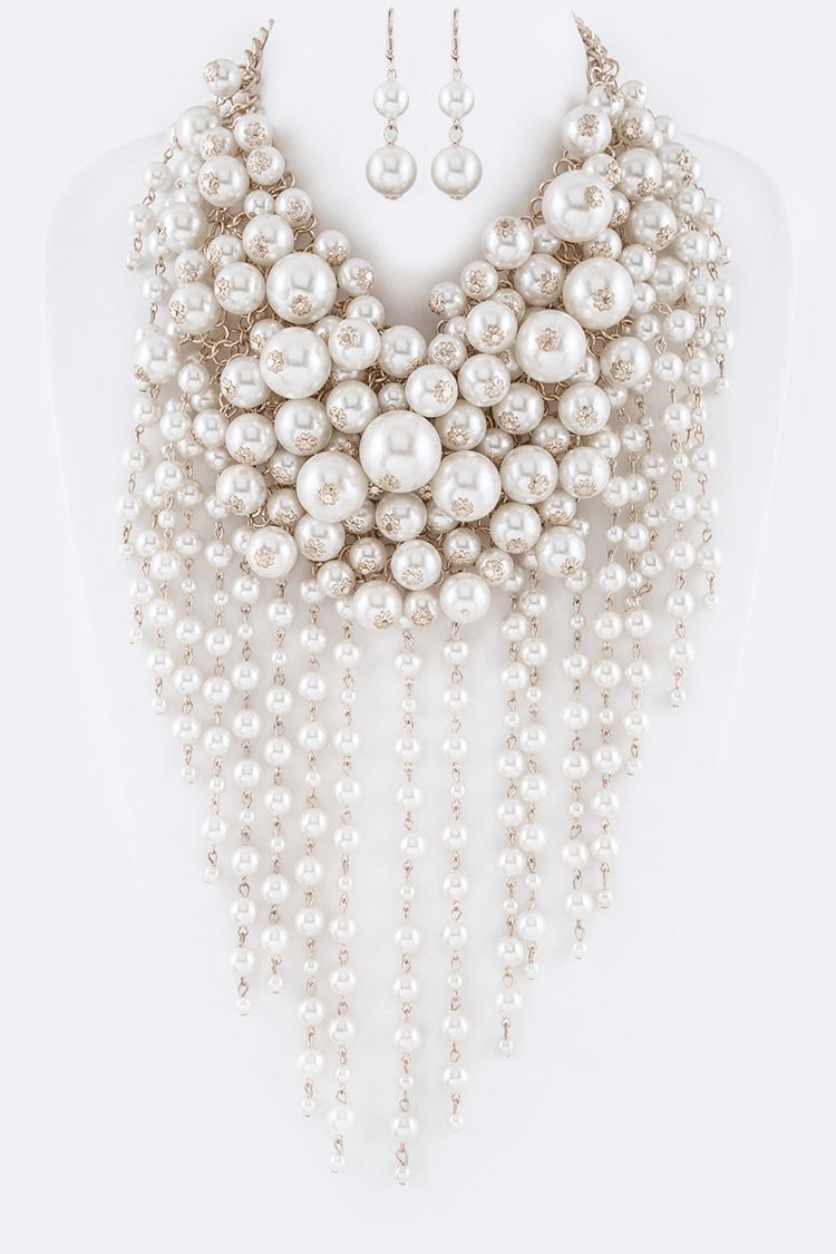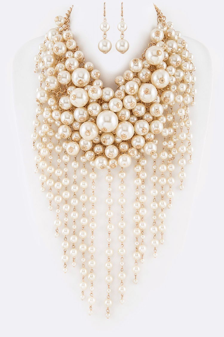 Head Turner Rich-Layered Pearl Statement Necklace Set LA-ST0062