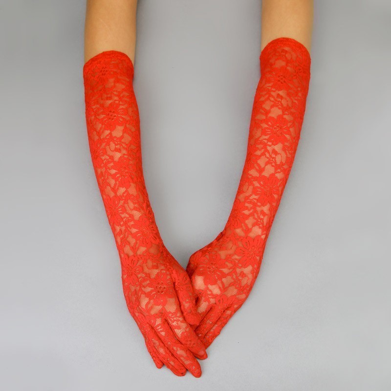 FASHIONABLE LACE LONG GLOVE W/ FLOWERS