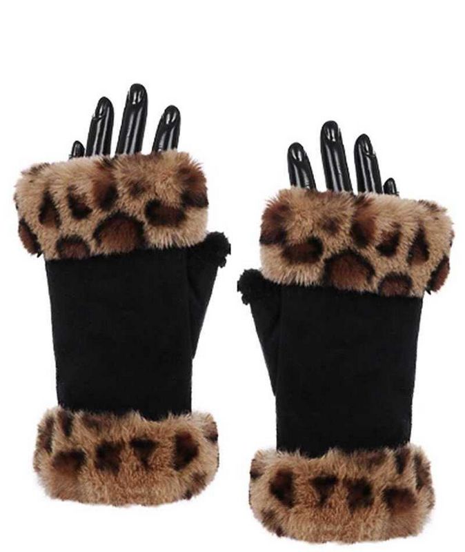 • FASHION LEOPARD FUR OPEN FINGER GLOVES