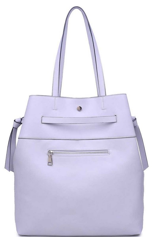 - Exterior Details: Drawstring detail, back zip pocket Inside.