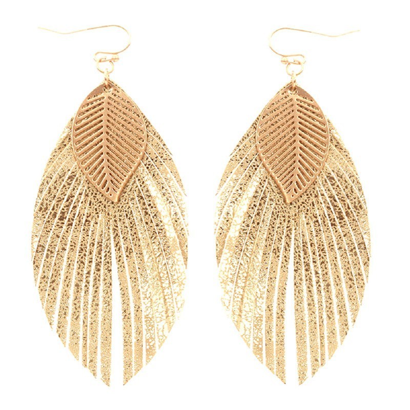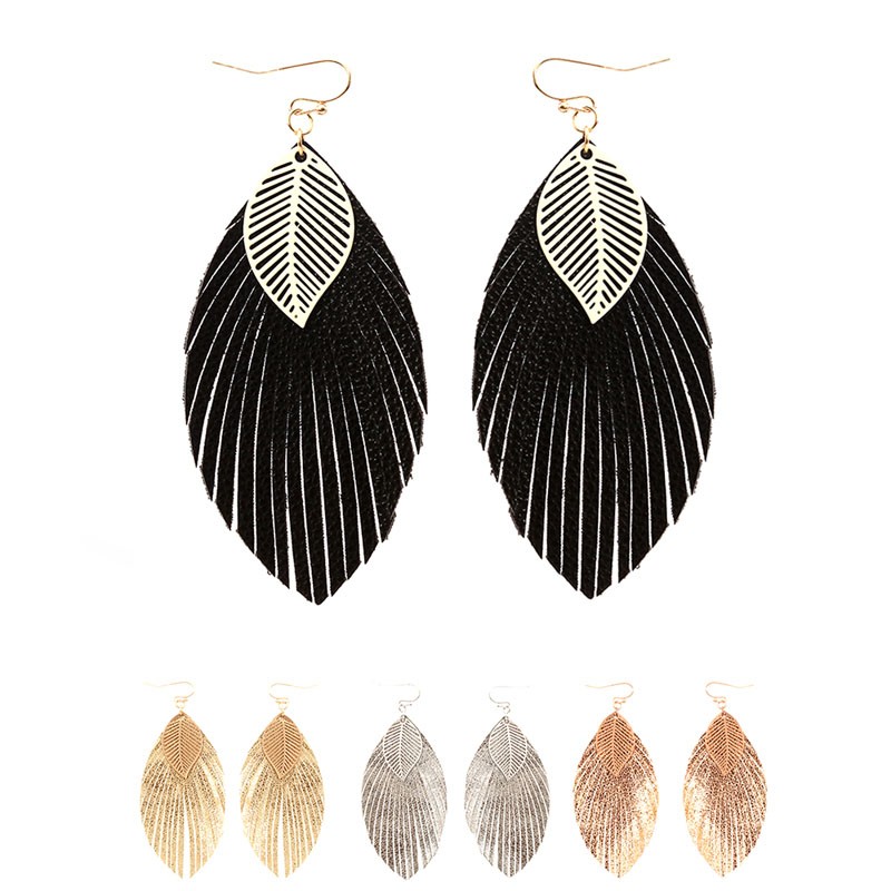 Trendy Metal Filigree Layer Leather Leaf Earrings MH-QE4502 Please sign in or register to buy this product.