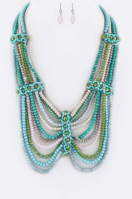 MIX BEADS LAYERED STATEMENT NECKLACE SET