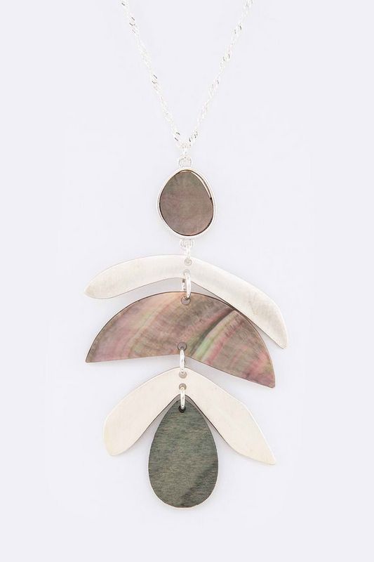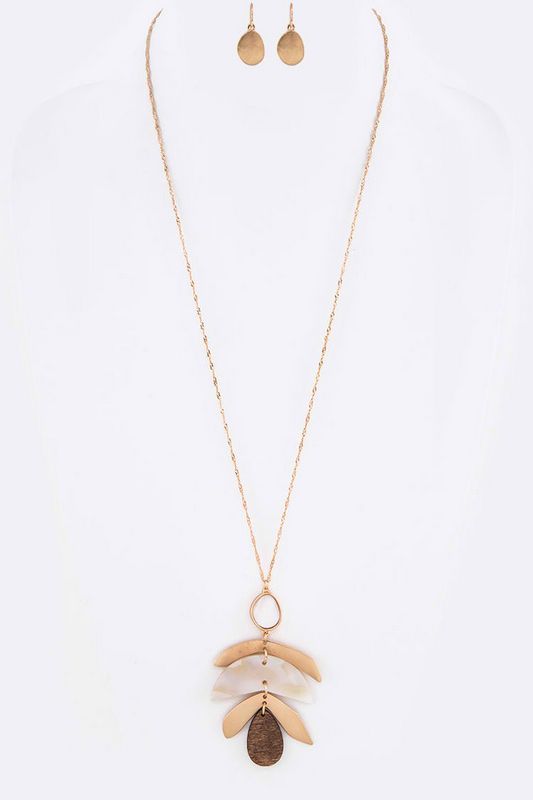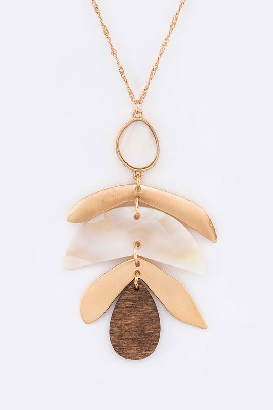 Chic Mix Media Wood, Shell & Metal Pendant Necklace Set