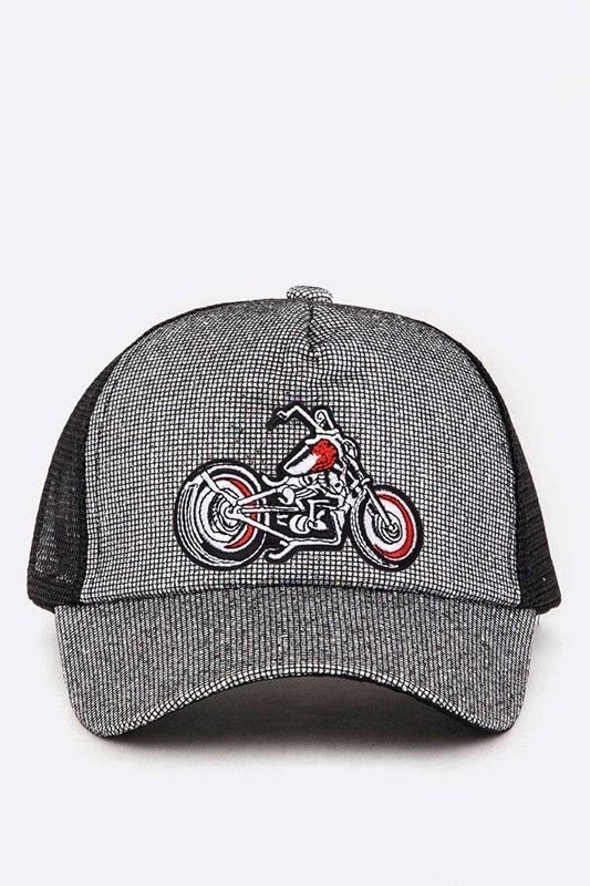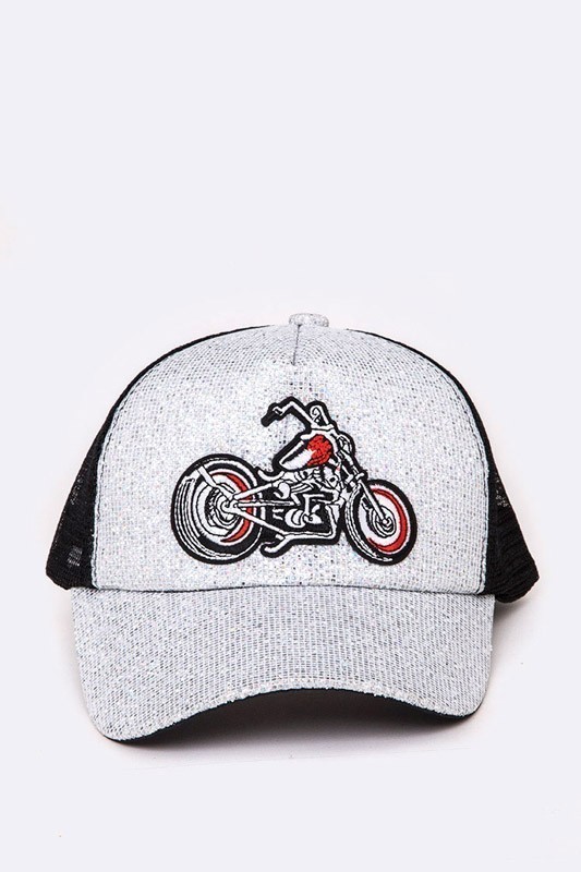Motorcycle Patch Glitter Trucker Hat