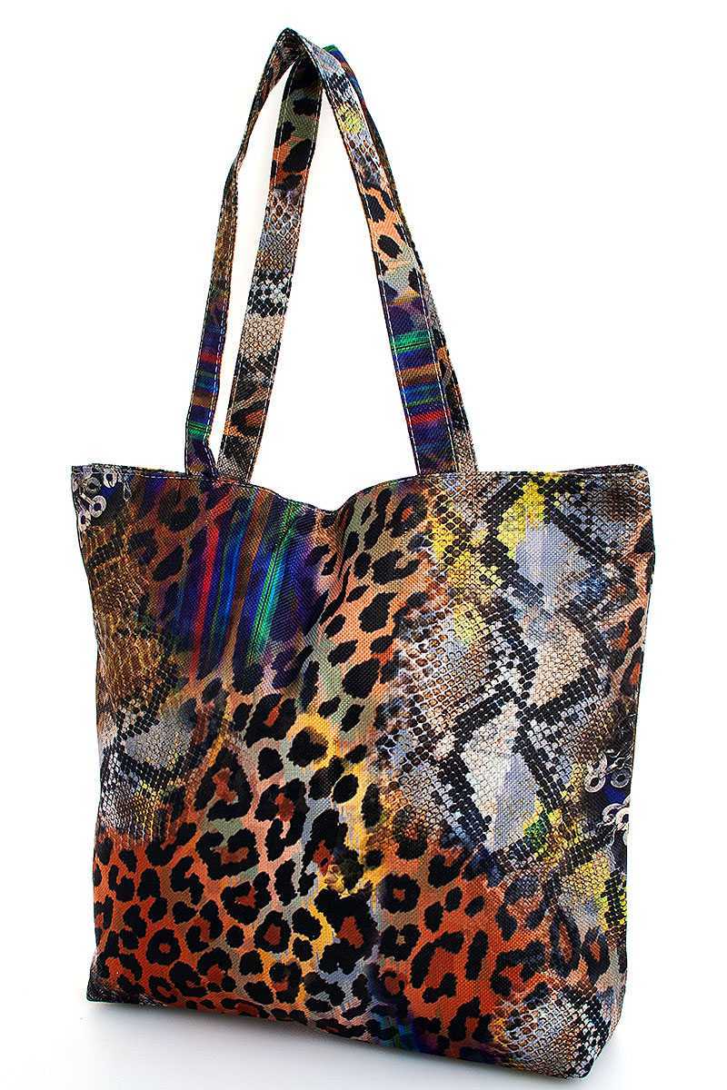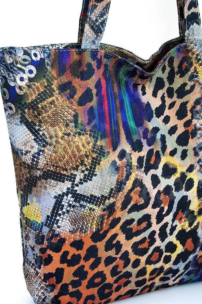MULTI COLOR RAINBOW LEOPARD PRINT ECCO TOTE BAG