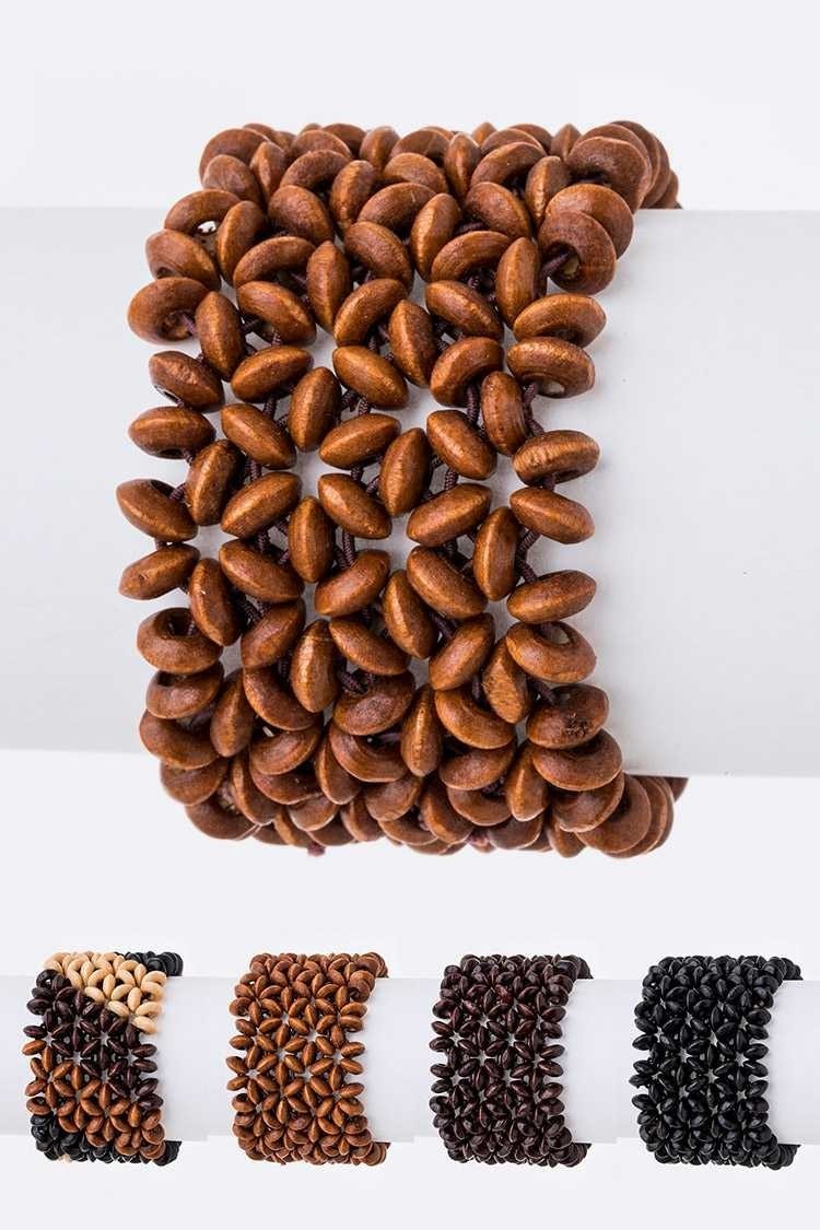 • Pack of 12 Wooden Beads Stretch Bracelet Set LA-BRC4667