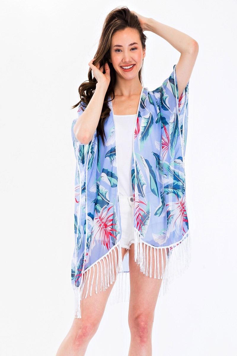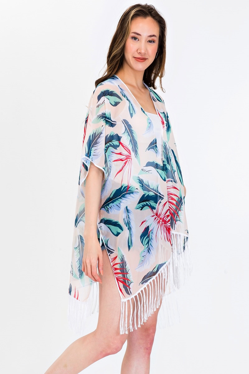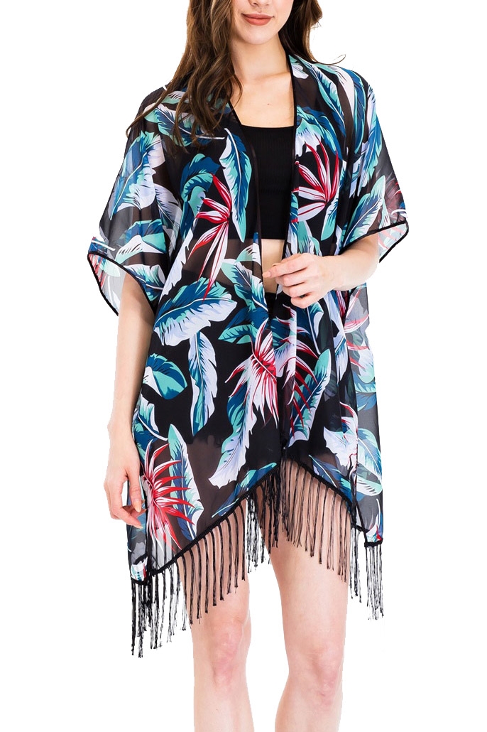 • Pack of 6 Chic Jungle Leaf Print Tassel Kimono FMKSF230.