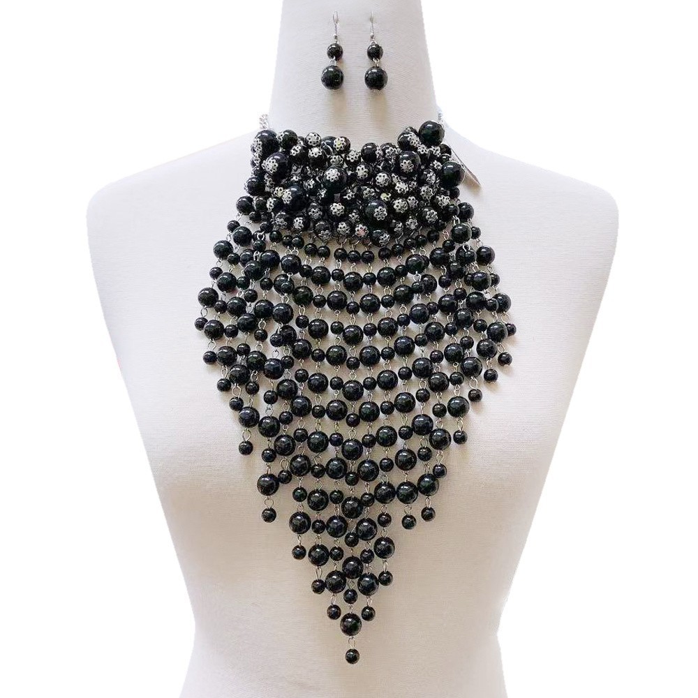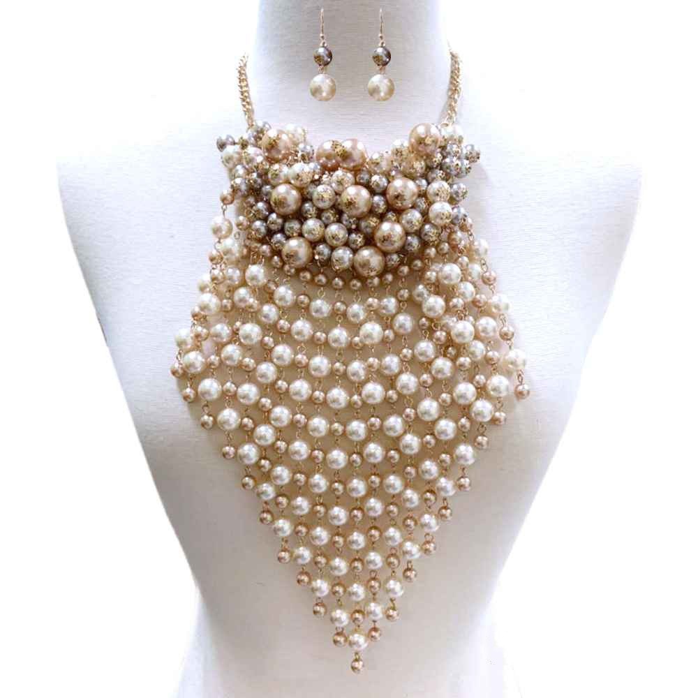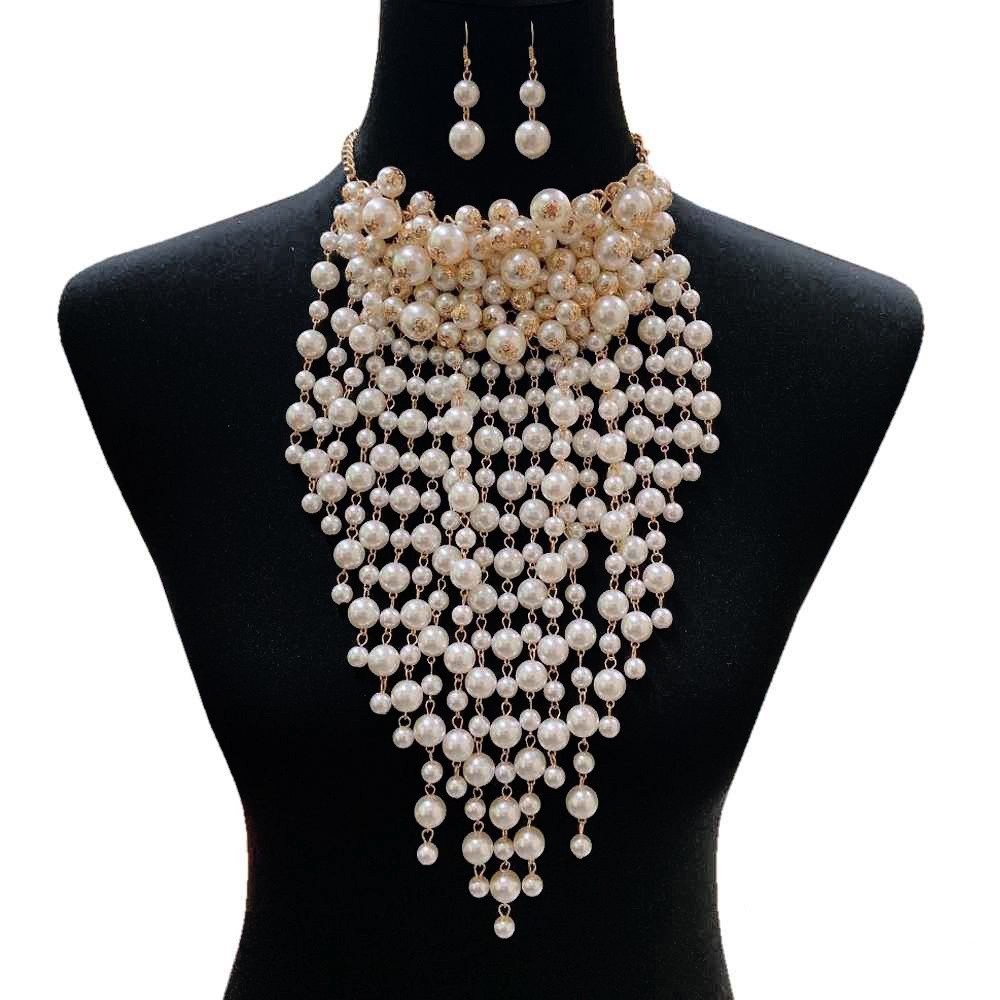 PEARL TASSEL ACCENT PEARL NECKLACE SET