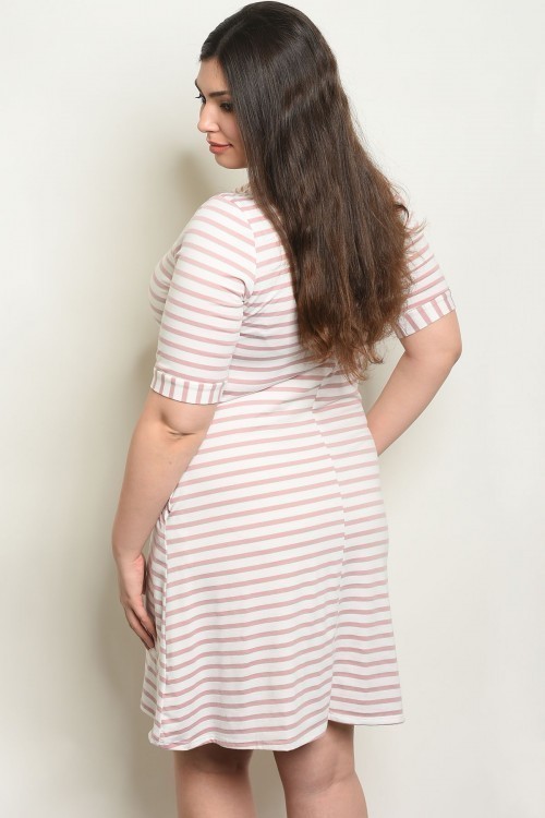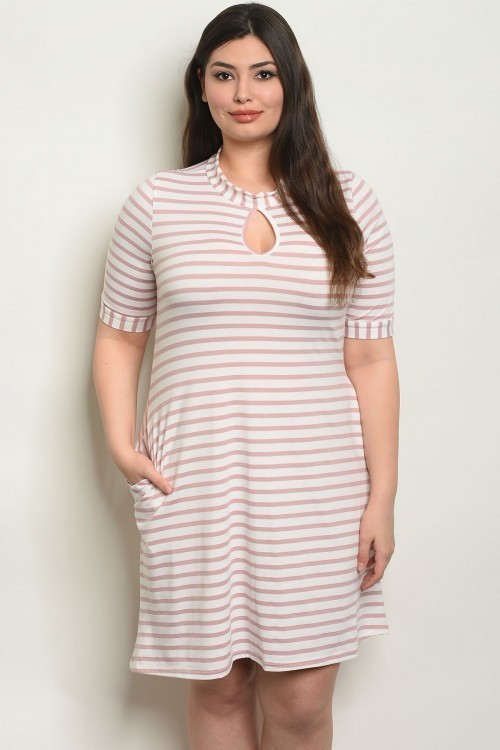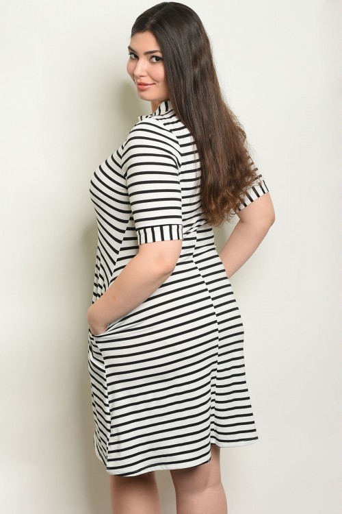- Plus Size Short Sleeve Mock Neck Striped Tunic Dress - Pack of 7 Pieces SKU# MH-448984