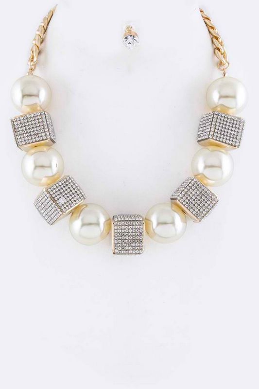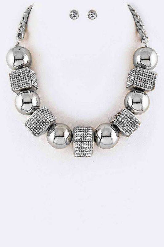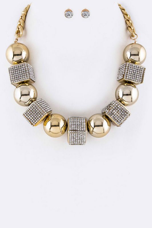 Posh Fashion Ball Crystal Cube Necklace Set