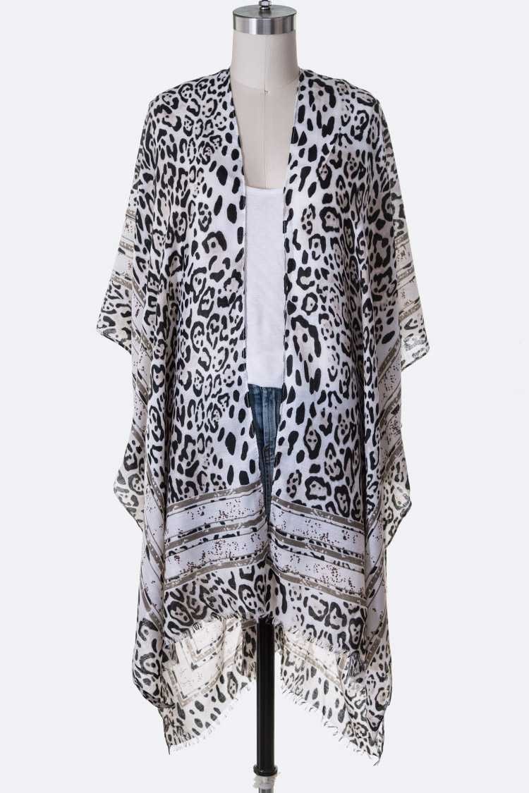 • Raw Edge Cheetah Printed Kimono LA-PN222X112