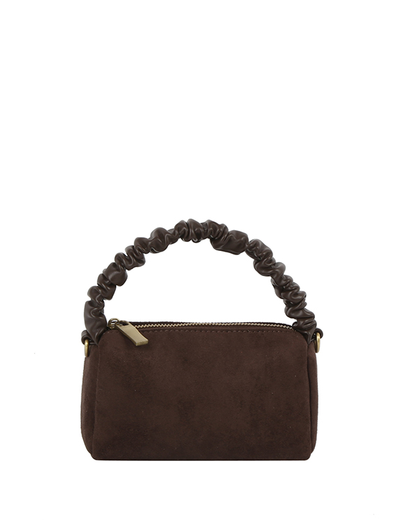 - Ruched Top Handle Mini Suede Crossbody Bag
