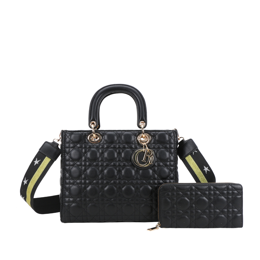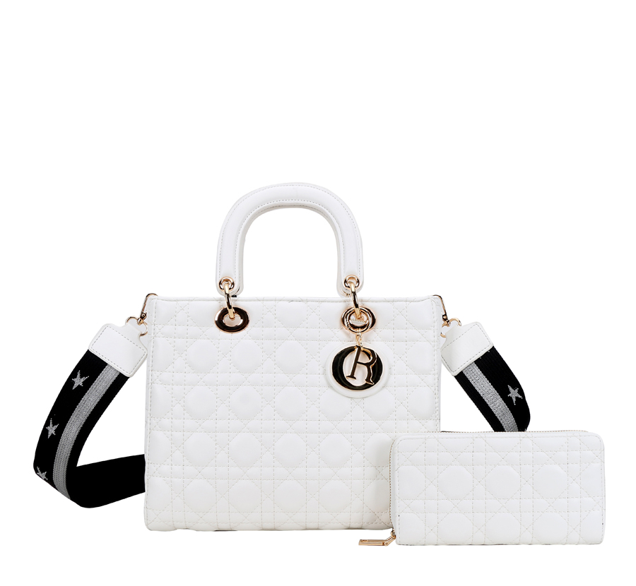 - 2-IN-1 Large Size Quilted Satchel Wallet Set