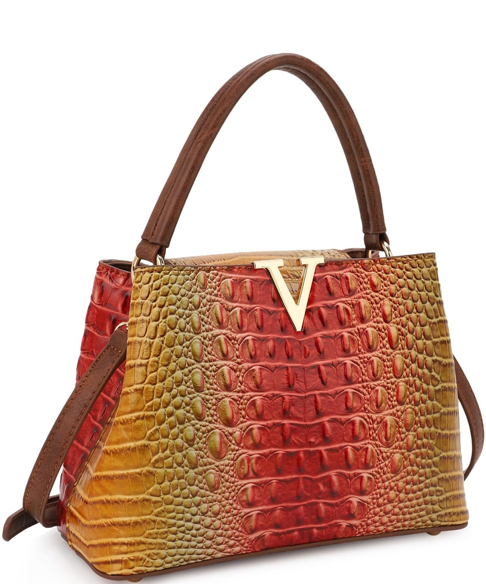 - Crocodile Tie-dyed Satchel Gold V Accent