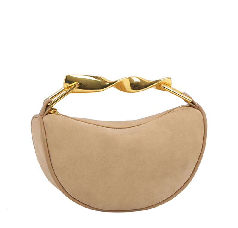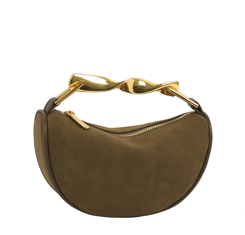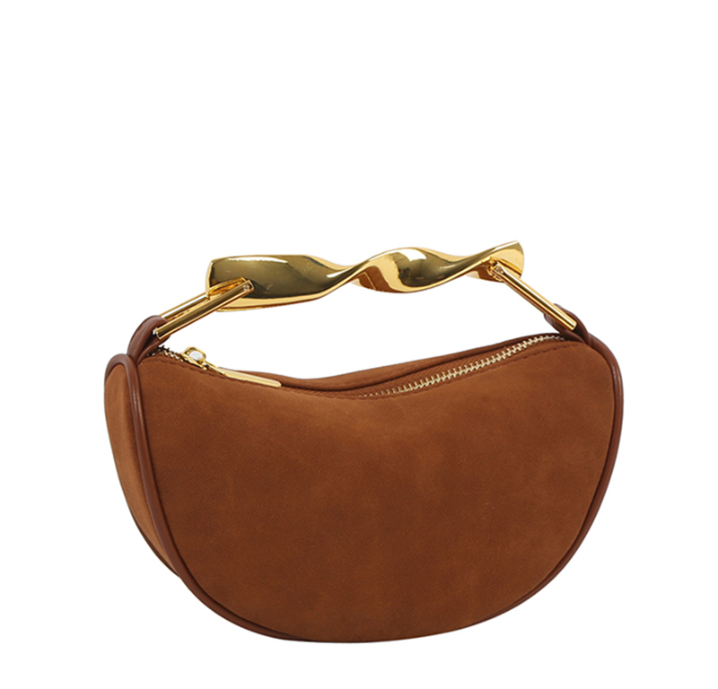 • Twisted Top Handle Suede Satchel Bag