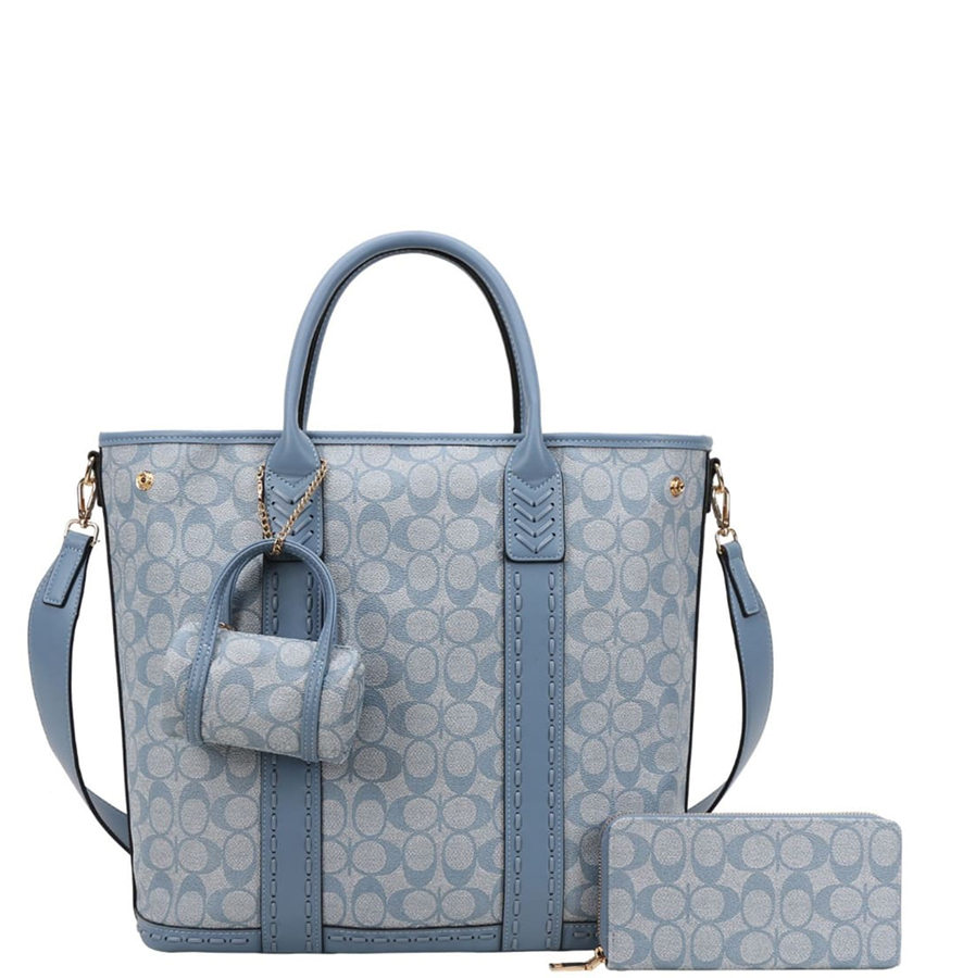 3-IN-1 Expandable Oval Print Tote / W Small Satchel Wallet Set