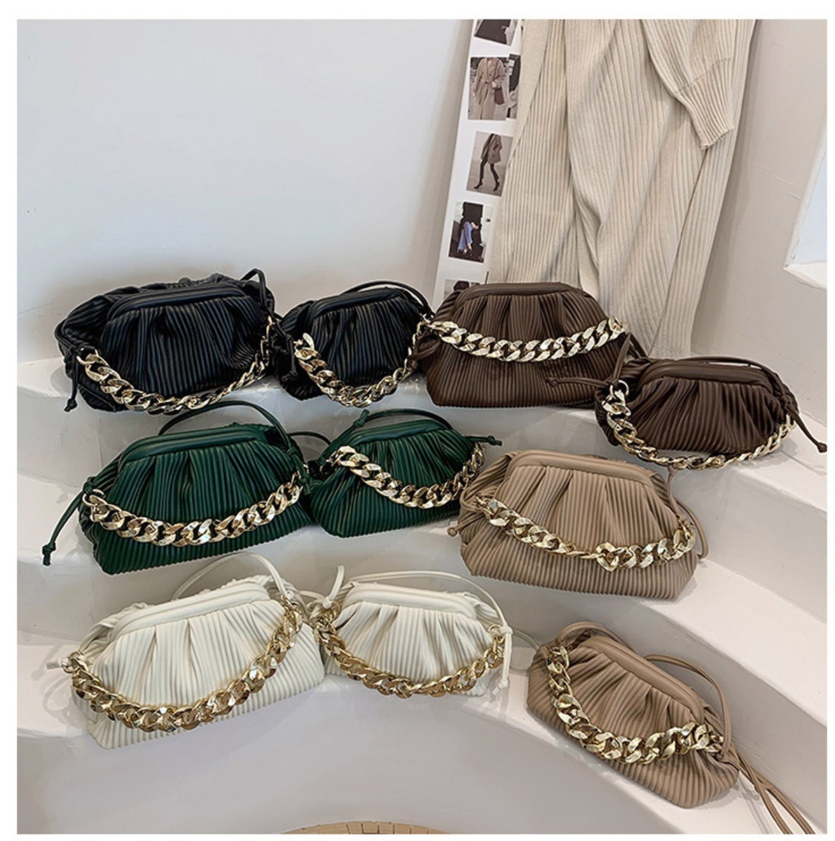 SOFT QUILTED LINKED CHAIN SATCHEL SHOULDER BAG