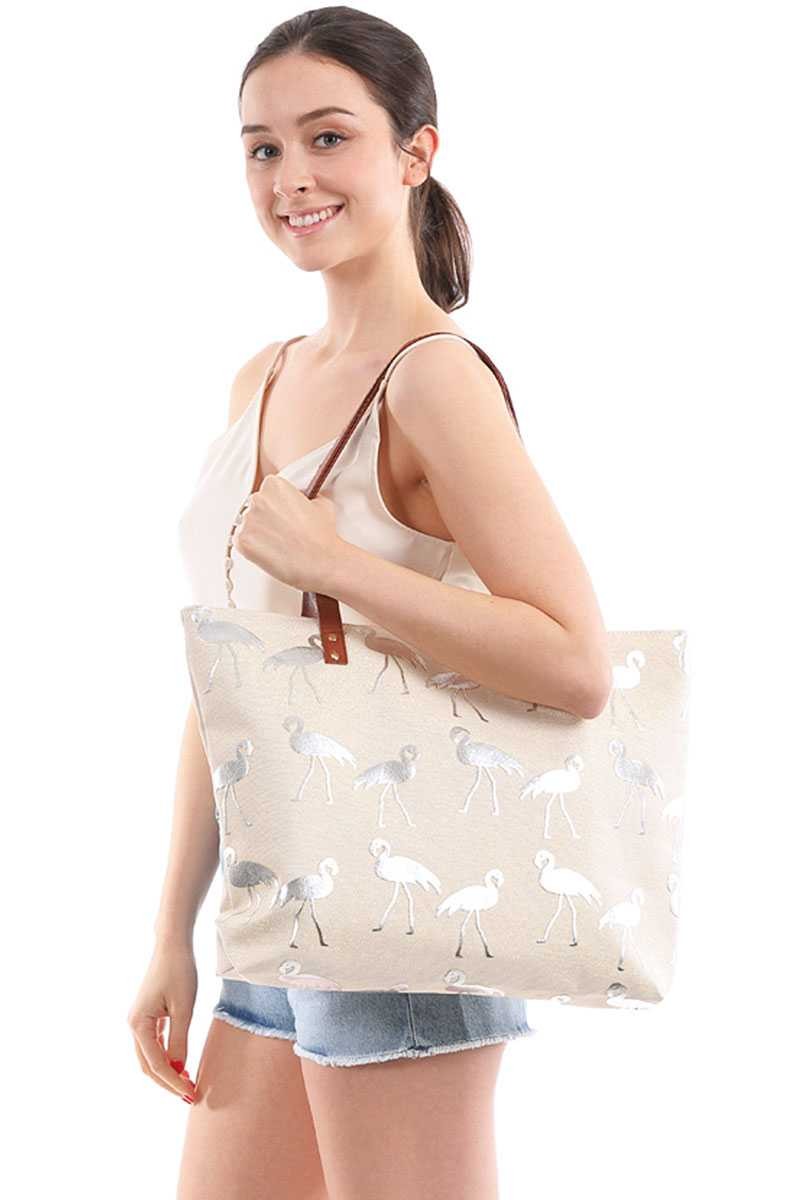 • STYLISH SOLID COLOR CRANE FOIL BEACH BAG