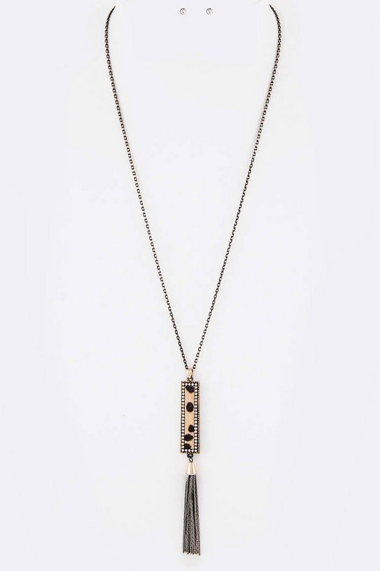Stylish Crystal Pave Animal Leather Tasseled Pendant Necklace Set