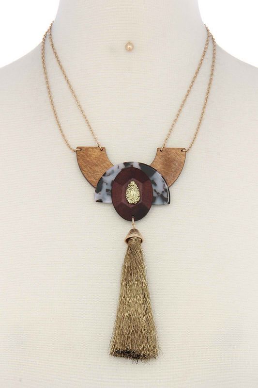 STYLISH GEOMETRIC SHAPE TASSEL FASHION NECKLACE SET