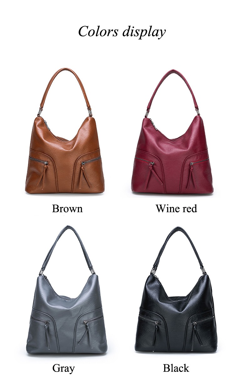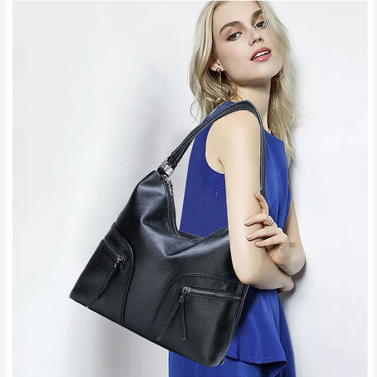 - Stylish Smooth Leather Dual Side Pockets Hobo 17082