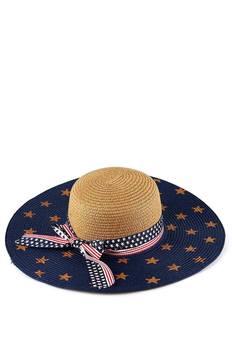 STYLISH STAR AND STRIPE NATURAL FIBER WOVEN SUN HAT