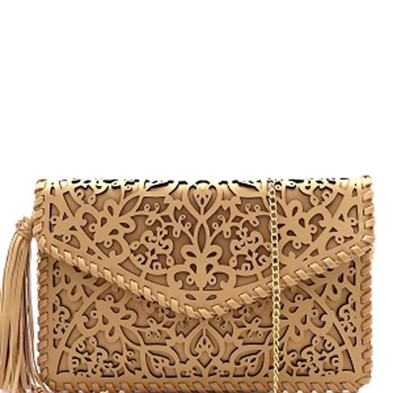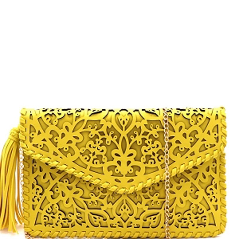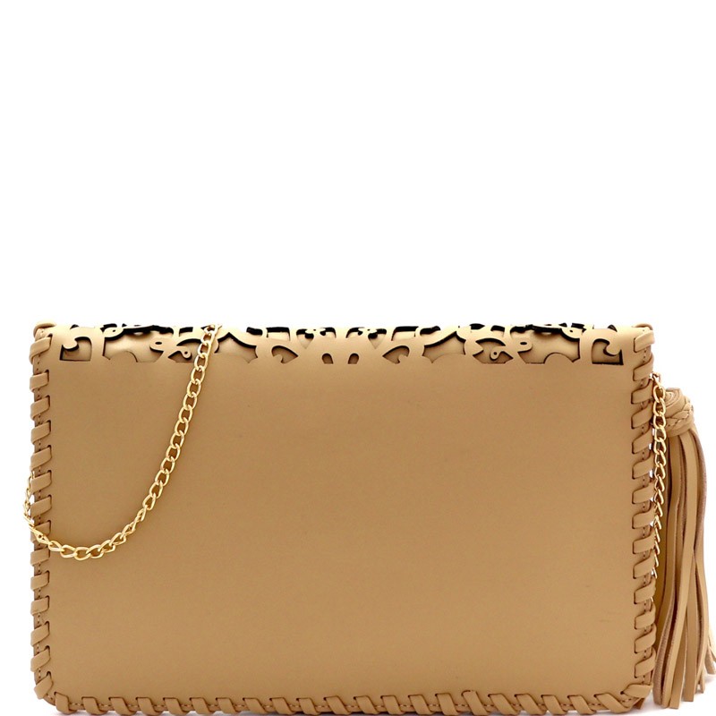 Tassel Accent Whipstitched Laser-Cut Envelope Clutch MH-PPC6605