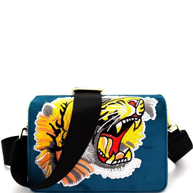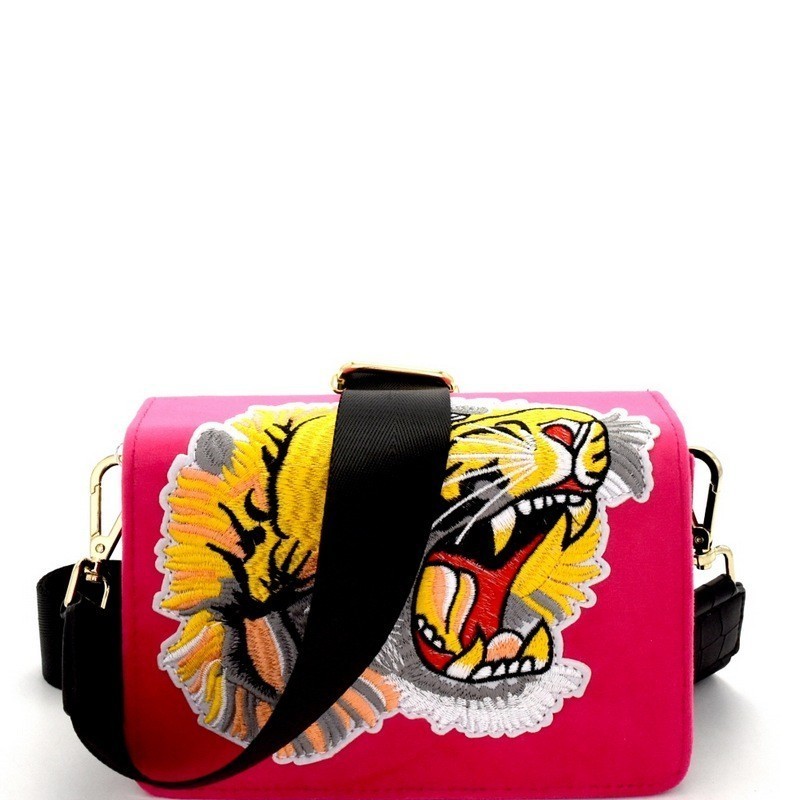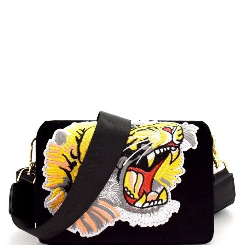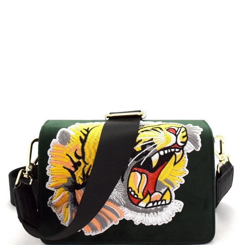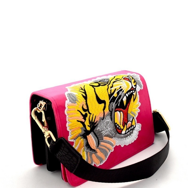 TIGER PATCH FELT-SUEDE FLAP SHOULDER BAG