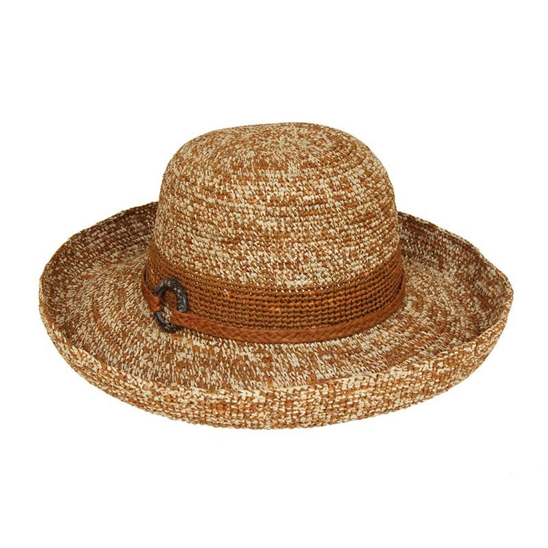 Trendy 2 Tone Crochet Raffia Upbrim Hat With Trim