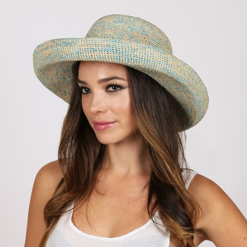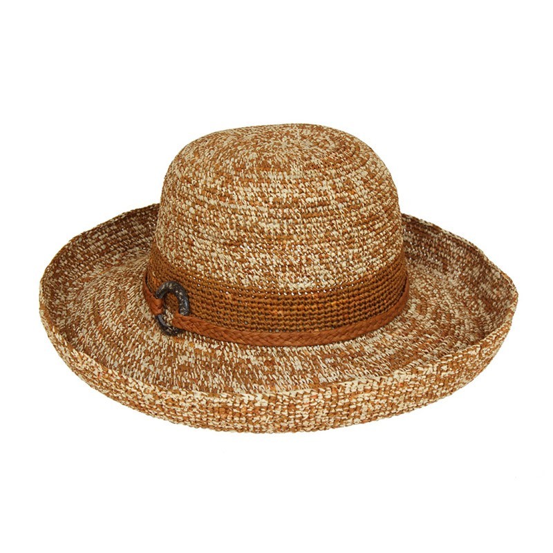 • 2 Tone Crochet Raffia Upbrim Hat with Trim