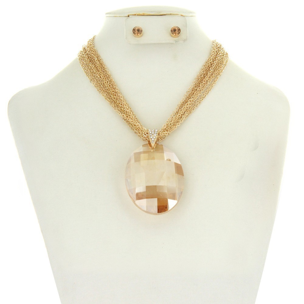 Trendy Multi Strand Chain Nk W/oval Pendant