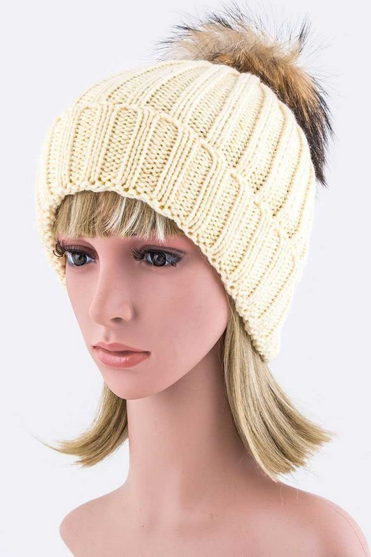 Trendy Racoon Fur Pom Pom Beanie