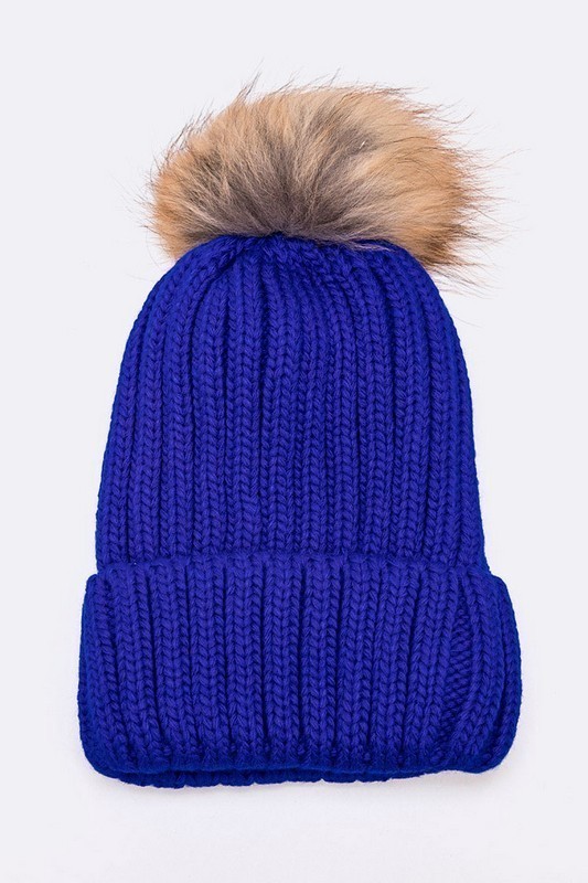 • Trendy Racoon Fur Pom Pom Beanie
