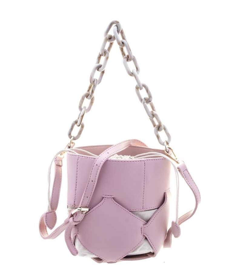 UNIQUE GEOMETRIC CUT DESIGN LINK HANDLE TOTE BAG