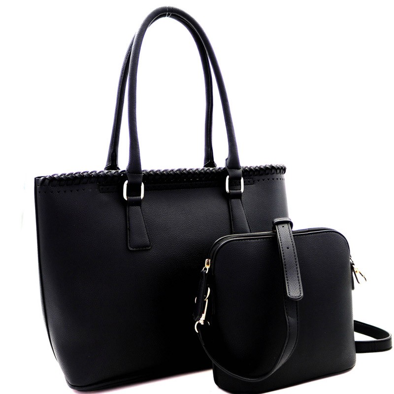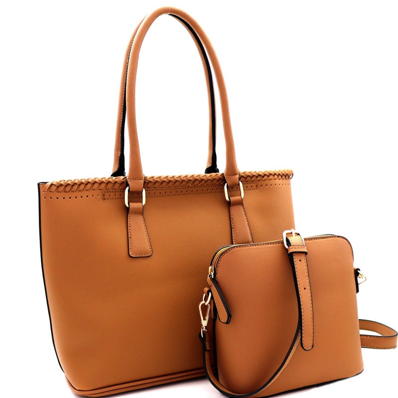 Fashionable Whipstitched Laser-Cut 2 in 1 Tote Messenger Value SET MH-AS3220