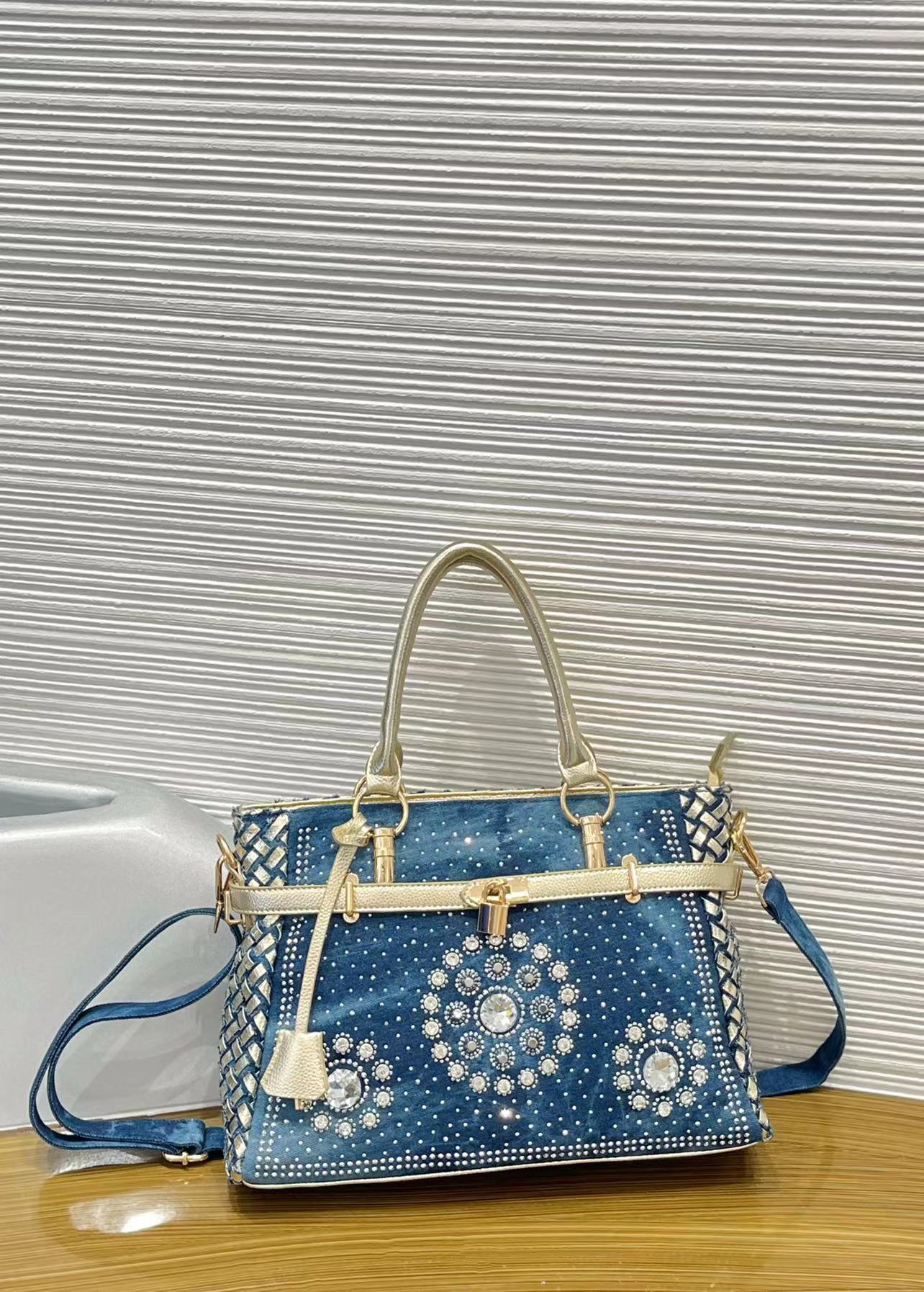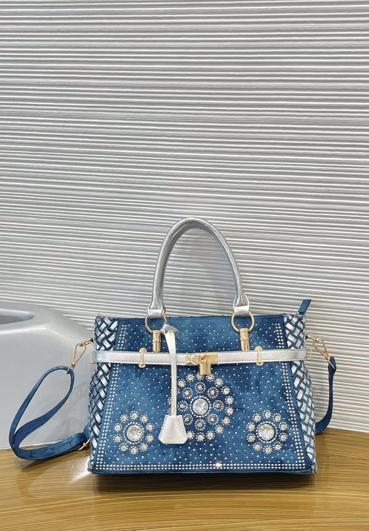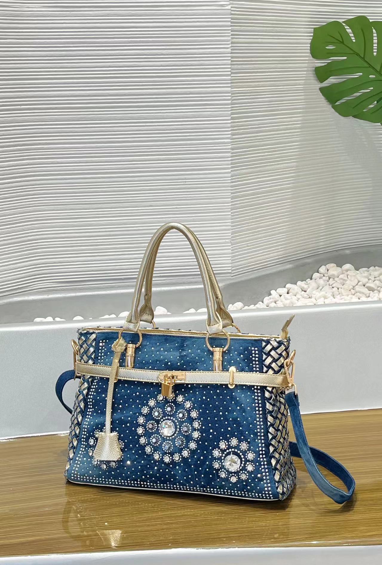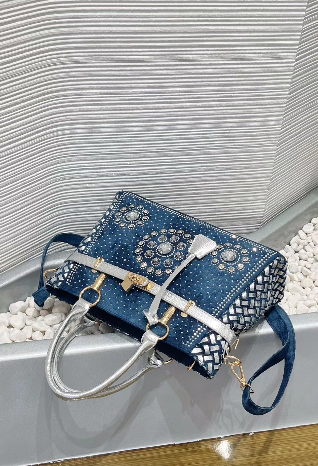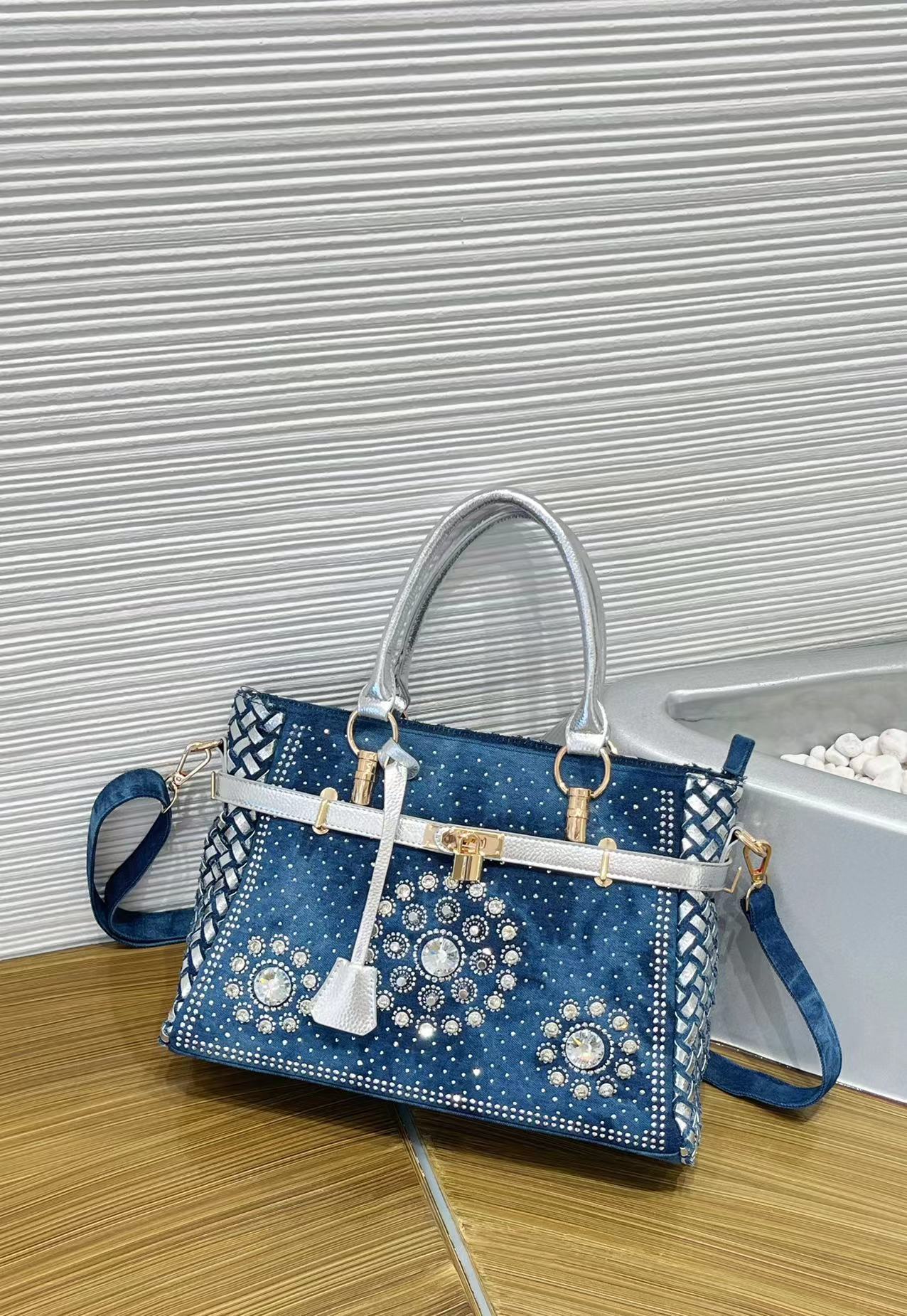 Women’s Blue Denim Rhinestones Handbags with Lock